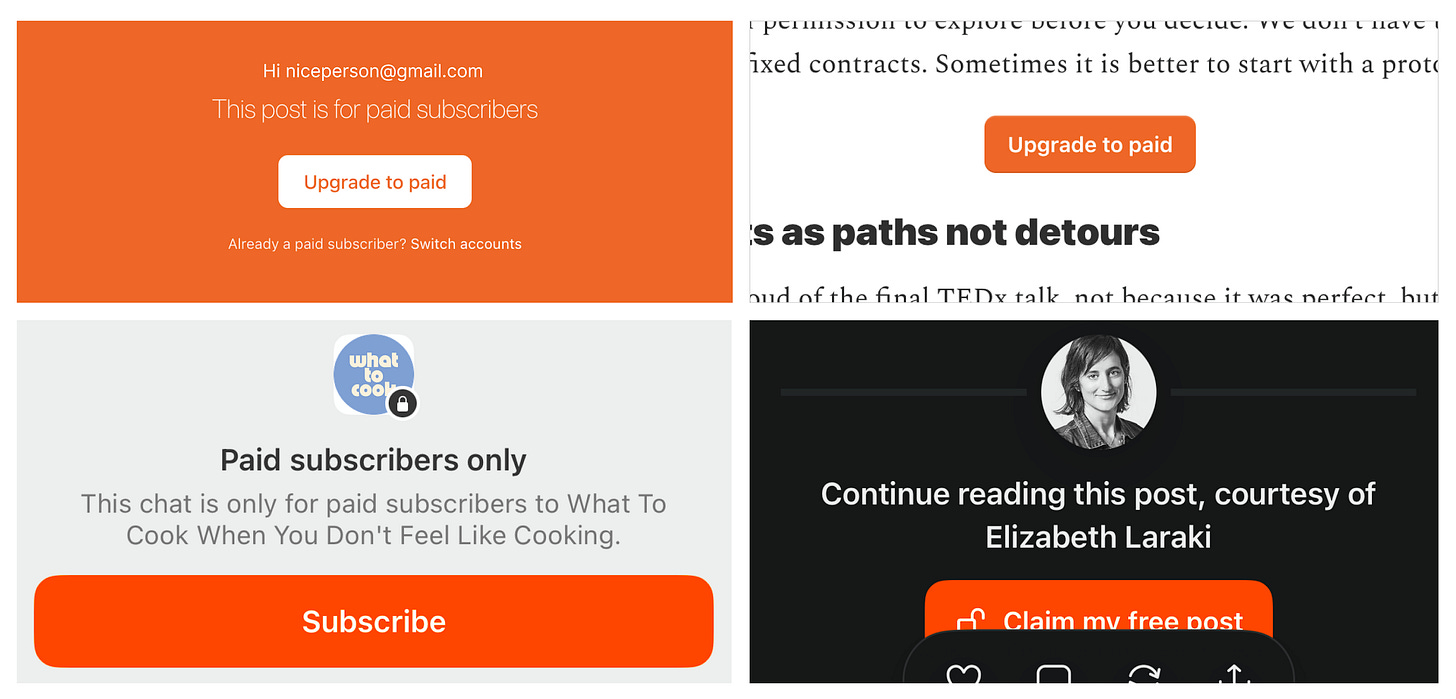 This dynamic feels fundamentally broken. Readers suffer through upsell after upsell. Creators not only wrestle with the vulnerability of sharing their work, but also with the discomfort of asking people to pay for it. And all the while, are unknowingly giving free subscribers a crappy experience.