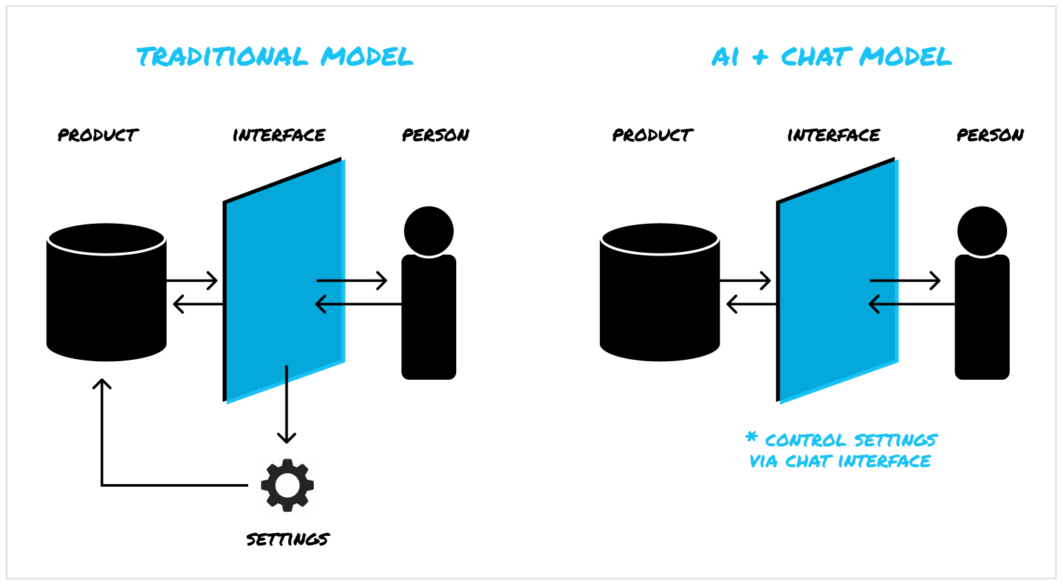 Going forward, we will use traditional settings UIs even less because chat has the potential to become the “meta interface.” It’s both our window into the product and the way we shape our experience with the product — the interface for the interface.